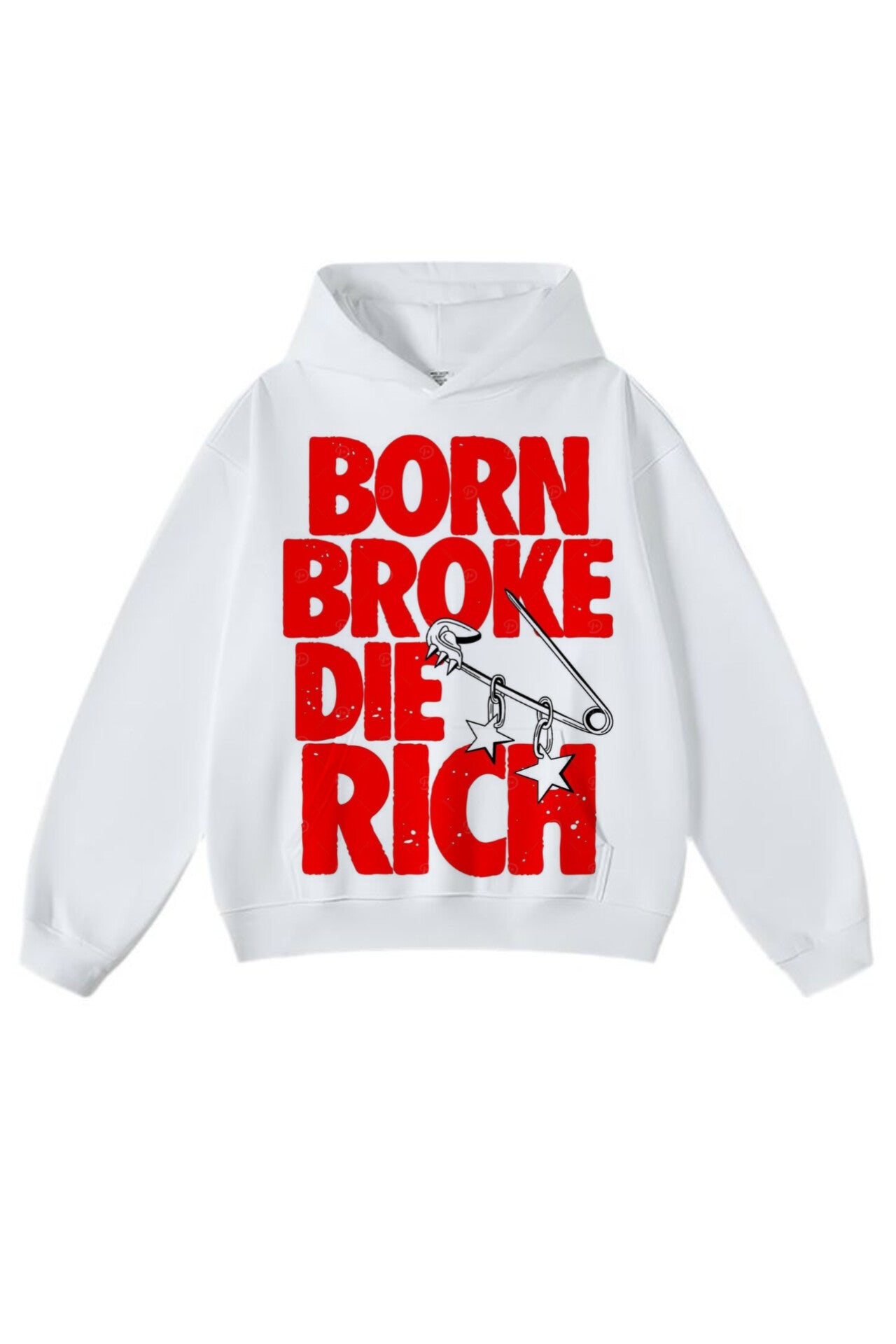 Make a fearless statement with the Born Broke Die Rich hoodie — designed for dreamers, hustlers, and those who refuse to settle. Crafted in clean white with striking red typography, this hoodie delivers a powerful message of ambition and grind. The bold back print is complemented by a minimal front logo for a balanced streetwear look.